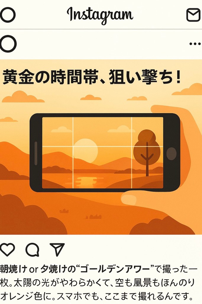 おすすめは「朝日が昇る直前」と「夕日が沈む直前」の時間帯。やわらかい光が風景を美しく照らし、影もドラマチックに見せてくれます。旅行先ではぜひこの時間を狙って撮ってみてください。