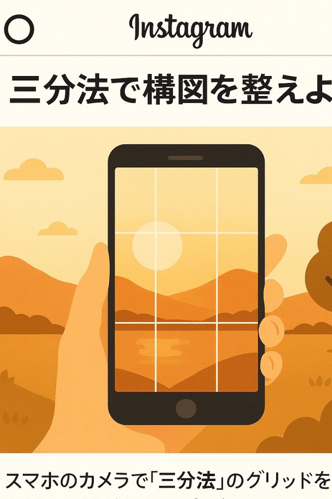 写真の基本は構図です。スマホでも「三分割法(ルール・オブ・サード)」を意識するだけで、グッとプロっぽくなります。